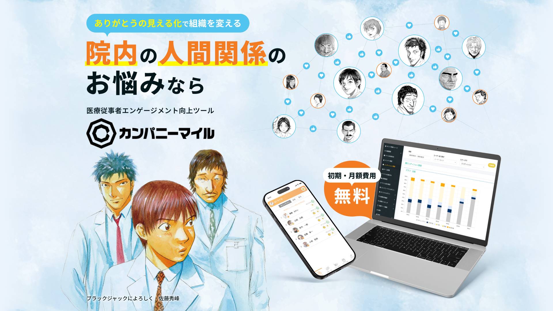 一般的な従業員エンゲージメントツールのような、導入費30万円+月々いくらといった利用料がかかりません。カンパニーマイルは業界初の完全無料でご利用いただけます。