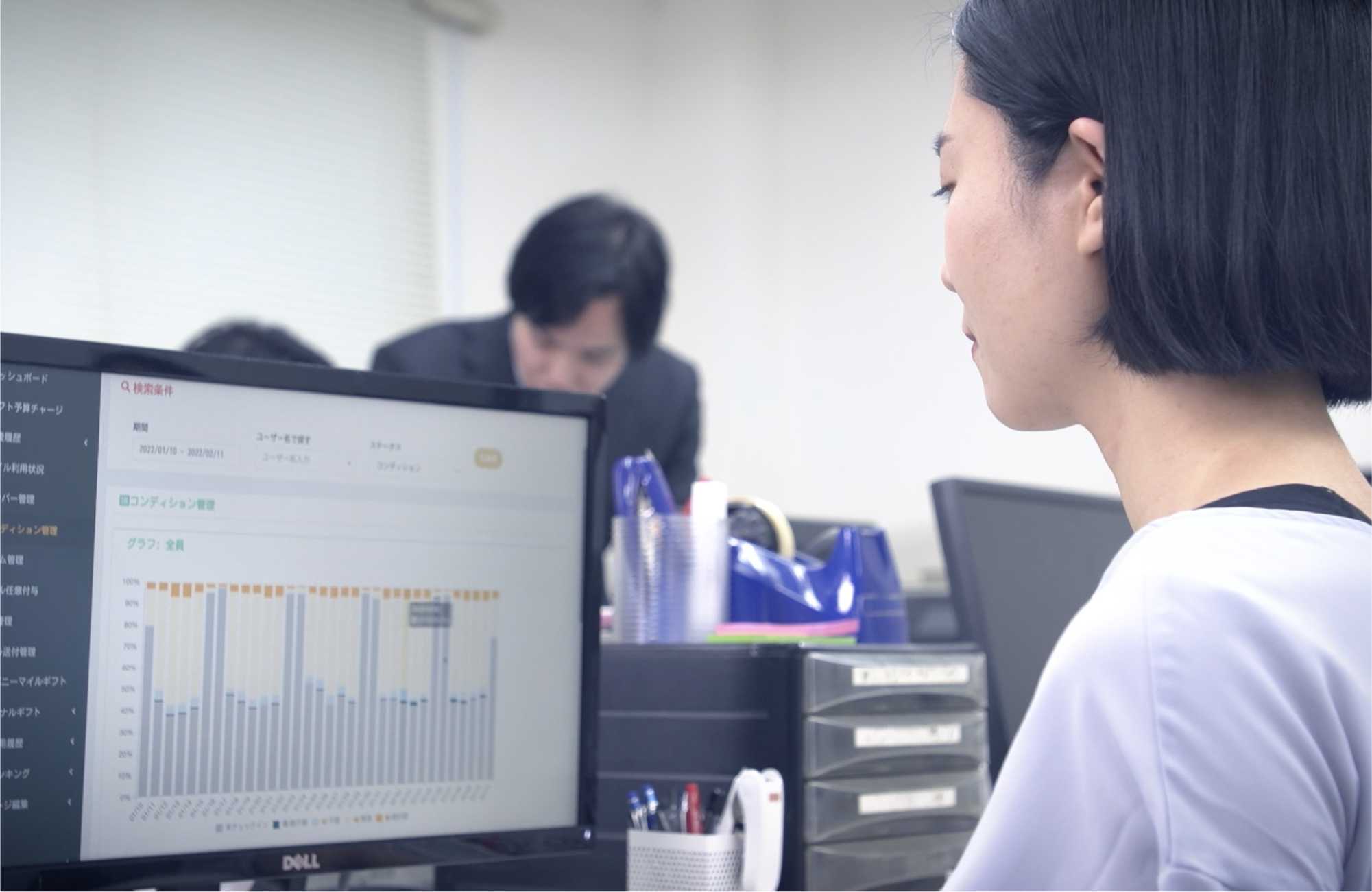 今日のコンディションアイコンが悪い、最近調子が悪いアイコンが続いているなど、スタッフが今どんな状況なのかをいち早く気づけるので、声をかけたり早く対処することができます。